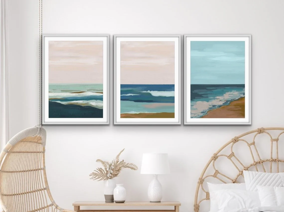اگر فضا رنگهای خنثی دارد، یک تابلو سهتکه رنگی میتواند همان نقطه کانونی باشد که فضا نیاز دارد.
